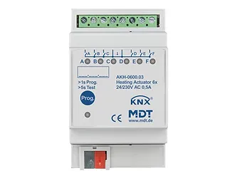 • Ελεγχόμενος με 1 Bit (μεταγωγή / PWM) / 1 Byte μεταβλητή ενεργοποίησης ή άμεσο έλεγχο με τιμή θερμοκρασίας μέσω διαύλου KNX