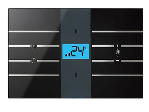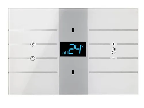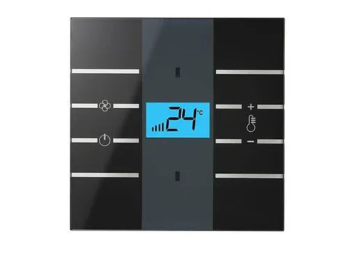 Γύρω από την οθόνη υπάρχουν 8 πλήρως διαμορφώσιμα χωρητικά πλήκτρα για τον έλεγχο οποιασδήποτε συσκευής KNX. Μερικά από αυτά μπορούν να χρησιμοποιηθούν για να ενεργούν τοπικά στα χειριστήρια του θερμοστάτη, όπως η διακύμανση της θερμοκρασίας ρύθμισης, η διακύμανση του αερισμού και η επιλογή των σεναρίων αναμονής και νυχτερινής άνεσης.