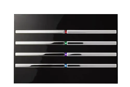 Τα 8 πλήκτρα εμπλουτίζονται με τέσσερα RGB LED προγραμματιζόμενα σε 7 χρώματα: κόκκινο, πράσινο, μπλε, κίτρινο, τυρκουάζ, ματζέντα και λευκό. Οι λυχνίες LED μπορούν να συσχετιστούν με συμβάντα KNX χρησιμοποιώντας τα αντικείμενα επικοινωνίας τους έτσι ώστε να επιστρέφουν κάθε είδους ανατροφοδότηση στο σύστημα.